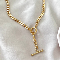 ล็อกสลับชุบทอง925เงินสเตอร์ลิงสร้อยคอประดับโซ่คิวบา